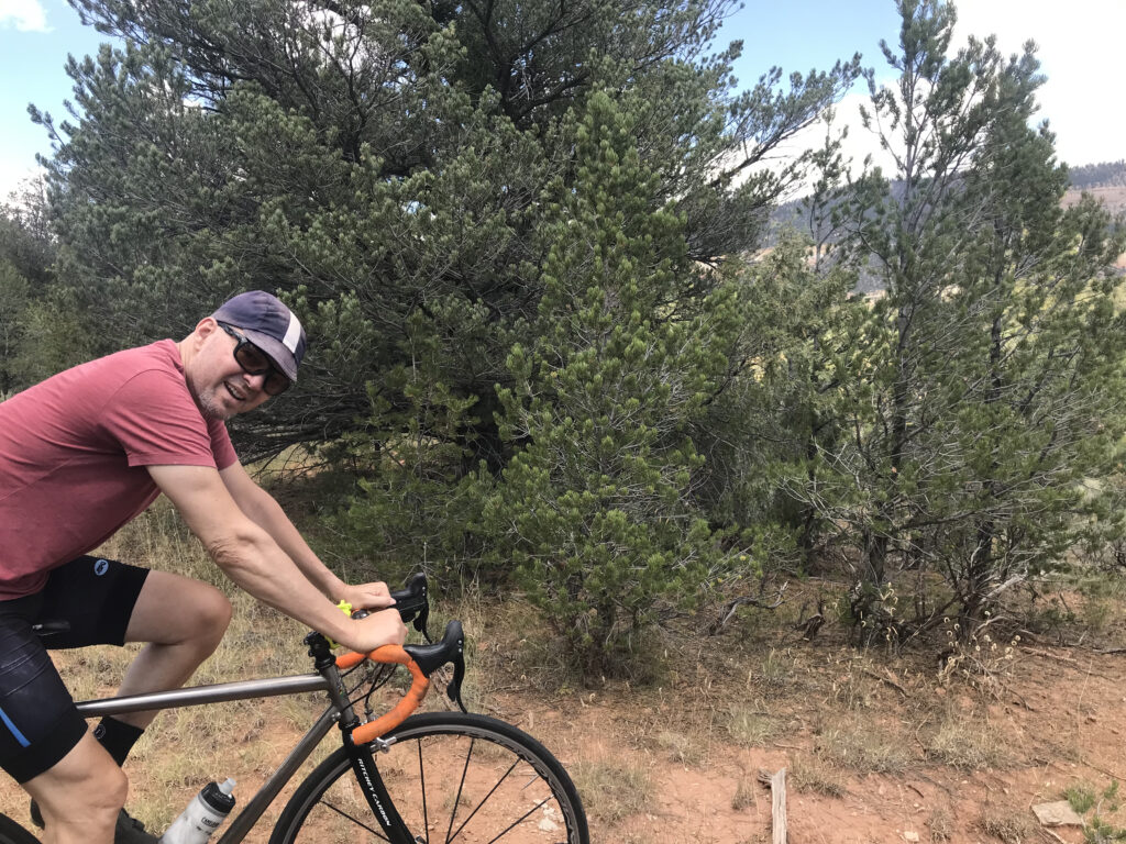 In early August, we spent a day up top mushroom foraging with neighbor Zoe, and later in August included a day trip to share our vision with Aunt Susan and Uncle Mike. Another day trip in September gave us an opportunity to “mountain” bike- Kevin on his trainer and me taking on the first 2 miles up the cutoff on my own.